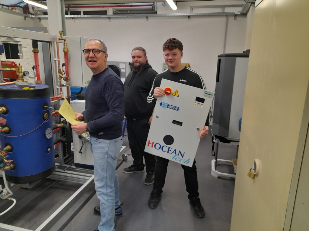La matinée s’est déroulée dans les ateliers du lycée, où les élèves de première euro ont travaillé en binômes ou trinômes avec leurs homologues allemands. Les travaux pratiques, préparés par MM. Meyer Daniel et Wagner Christophe, portaient sur une centrale de conditionnement d’air, des pompes à chaleur air-eau et eau-eau, la mise en service de chaudières ainsi que l’étude d’un schéma frigorifique.